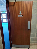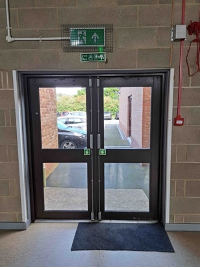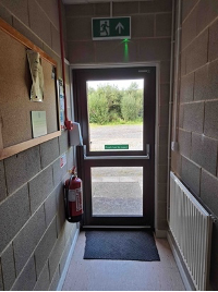 This information is for the entrance located to the side of the building. The entrance is primarily a Fire Exit, but is open whenever the building is occupied.