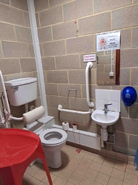 This accessible toilet is located at the rear of the building. There is level access to this accessible toilet.