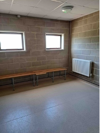 Changing Rooms feature wall mounted benches and hooks for clothing.